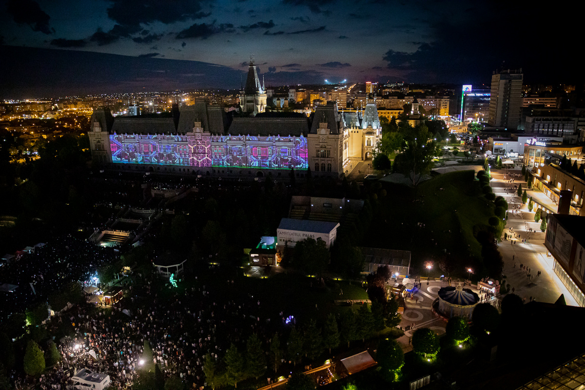Tot sâmbătă, fațada sudică a Palatului Culturii va prinde viață într-un mod spectaculos. Festivalul internațional de videomapping Light UP aduce nouă proiecții impresionante realizate de artiști din China, Italia, Polonia, Mexic, Germania, Venezuela, Ungaria, Ucraina și România. Publicul joacă un rol esențial în alegerea câștigătorilor, preferințele fiind exprimate printr-un sistem de vot prin SMS, care va conta în proporție de 50% din punctajul final. Cei care votează pot câștiga premii, iar un norocos va câștiga un iPhone 17 Pro. După spectacolul de artă digitală, seara va continua cu un concert susținut de Delia, iar prezentatorul evenimentului va fi Dan Fințescu.