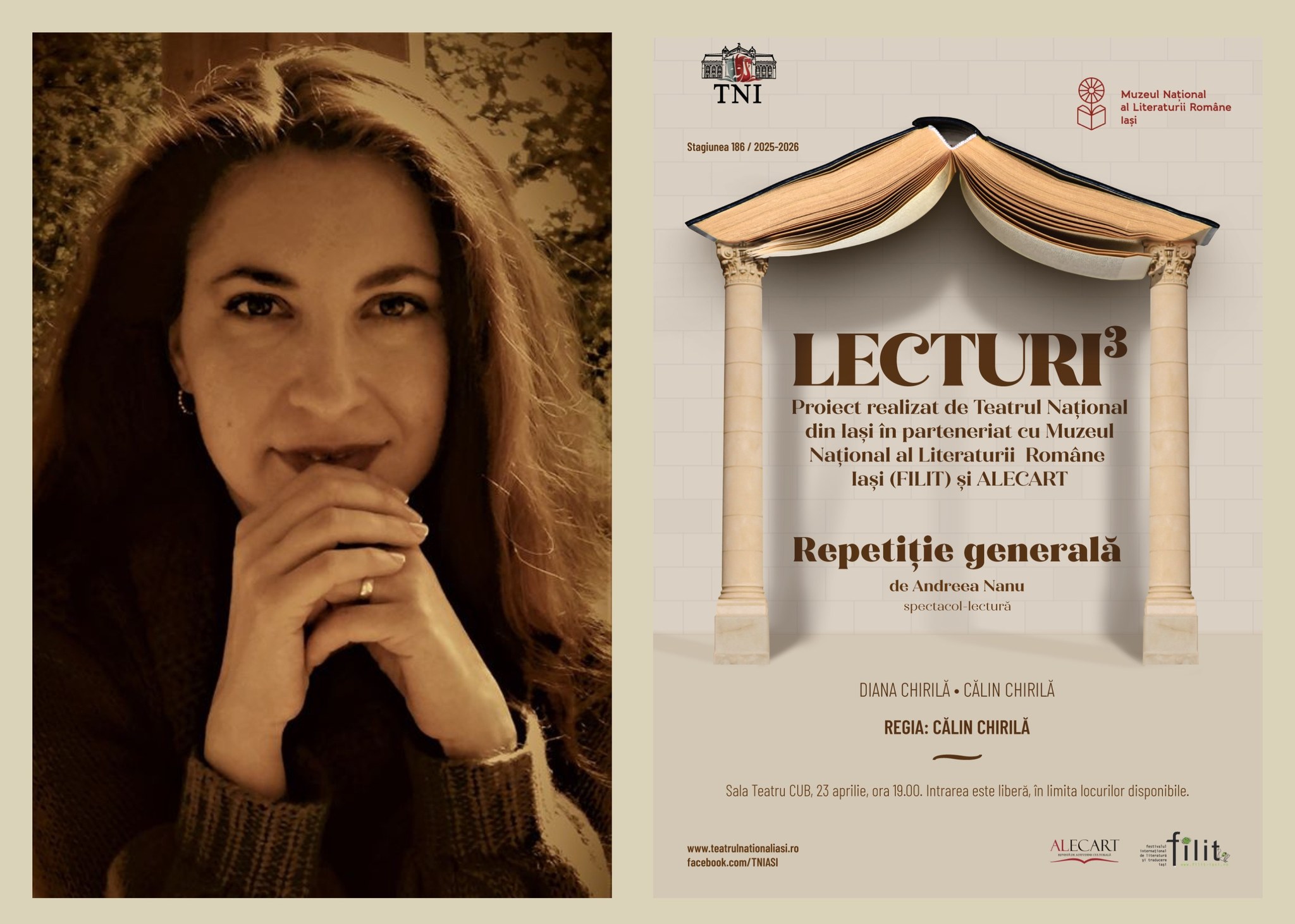 Publicul Lecturilor la Cub este așteptat joi, 23 aprilie, de la ora 19:00, la o nouă premieră în cadrul acestui proiect, spectacolul-lectură „Repetiție generală” de Andreea Nanu, text câștigător al lunii aprilie, în urma voturilor juriului reunit al Teatrului Național ieșean, Muzeului Național al Literaturii Române Iași și revistei „Alecart”.